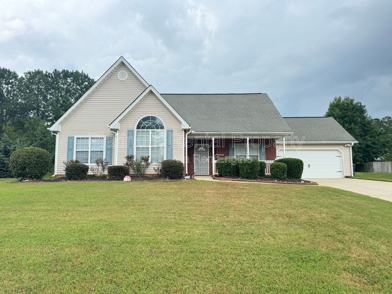 Adorable ranch home sitting in a quiet cul-de-sac lot with a rocking chair front porch and lots of curb appeal. The interior has architectural detail with arches and trey ceilings. Separate formal dining room. Fireside family room with trey ceiling. Master bedroom has trey ceiling and walk-in closet. Master bath has double vanities, a soaking tub and a separate shower. There are two spare bedrooms and a full hall bath with tub/shower combination. Lovely quiet neighborhood. Split bedroom floor plan. Washer and Dryer included with rental. 2 car garage. Freshly painted!