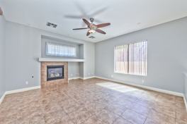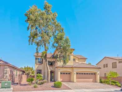 Welcome to this stunning 4-bedroom home in the highly desirable Aliante community! This beautifully maintained property features a spacious layout with living areas, an abundance of natural light, and energy-saving solar panels to help keep utility bills low. The main level includes a formal dining room, a cozy family room with a fireplace, and a large den—perfect for a home office or study space. The chef-inspired kitchen boasts granite countertops, a breakfast bar, stainless steel refrigerator, double ovens, and ample cabinet space. Upstairs, you'll find a versatile loft and generously sized bedrooms, all thoughtfully designed. The luxurious primary suite offers a private fireplace, balcony, oversized walk-in closet, and an en-suite bath with dual vanities, a soaking tub, and separate shower. Step outside to a backyard oasis featuring a covered patio, low-maintenance synthetic grass, and desert landscaping. This home truly has it all—schedule your showing today before it's gone!