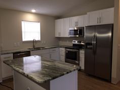 Frigidaire stainless steel appliances (self-cleaning oven with 5 burner electric stove, and refrigerator with water/ice dispenser), granite countertops, and all-wood white shaker cabinets with soft close doors. There's not a stitch of carpet anywhere in this house. The bedrooms have waterproof, luxury vinyl plank floors that look and feel like real wood. The master bath features a double sink vanity, and your commodes are elongated, comfort height seats. Lanai is glassed in and enclosed.