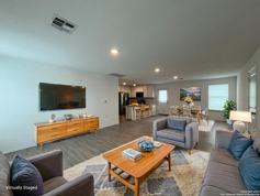 Discover this stylish 3-bedroom, 2-bath home featuring an open floor plan and modern conveniences. The home is equipped with an HVAC system with a programmable thermostat, tankless water heater, and vinyl flooring throughout, ensuring comfort and energy efficiency. The kitchen is well-appointed with a breakfast bar, dishwasher, microwave, gas stove/range, refrigerator, and solid countertops, perfect for culinary enthusiasts. Washer/dryer hookups add to the convenience. The primary bedroom offers a tranquil retreat with a shower/tub combo, single vanity, and a walk-in closet. The backyard, enclosed by a privacy fence, provides a private outdoor space for relaxation or entertainment. Additional features include a 2-car garage and access to HOA amenities such as a BBQ/picnic area and a playground. "*Our award winning Resident Benefits Package (RBP) required program includes Liability Insurance, Pest Control, Monthly Air Filter Delivery, Move-in Concierge (utilities/cable/internet), Credit Building, Resident Rewards, Identity Fraud Protection and more for only $65/mo. *If you provide your own insurance policy, the RBP cost will be reduced. Optional Premium Upgrades Available as well, More details in application. *PET APPS $30 with credit card/debit payment per profile or $25 by ACH per profile. All information in this marketing material is deemed reliable but is not guaranteed. Prospective tenants are advised to independently verify all information, including property features, availability, and lease terms, to their satisfaction. *some marketing photos may be virtually staged images*"