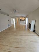Located in the desirable 55+ gated golf community of Kings Ridge, this Bristol model offers 2 bedrooms, 2 baths, and 1,335 sq. ft. of living space. Features include laminate flooring throughout, fresh interior paint, ceiling fans, and a kitchen with new refrigerator, two pantries, and breakfast bar. The living/dining combo opens to an enclosed lanai and fenced backyard, plus a side patio ideal for entertaining. Primary suite has a walk-in shower, large closet, and blinds. washer/dryer included. Whitehall HOA covers exterior paint, lawn care, irrigation, cable, internet, and more. Kings Ridge amenities include clubhouse, pools, tennis, pickleball, social clubs, and golf cart access to nearby shopping and dining.