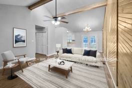 Step into this charming one-story home that perfectly blends character and comfort. With three bedrooms and two bathrooms, this residence invites you to experience a cozy lifestyle. The heart of the home is the inviting kitchen, featuring cream-colored cabinets and elegant granite countertops. A beautiful cedar wood accent wall adds warmth and style to the living room, creating a perfect backdrop for relaxation. Enjoy meals in the adjacent dining area that connects the kitchen and living room. Vinyl flooring flows throughout, enhancing the home's easy maintenance. Outside, discover a private backyard adorned with lush greenery, offering you a serene retreat.