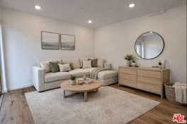 Welcome to Glenville Villas, a newer modern luxury apartment building on the Westside offering high-end design, premium finishes, and exceptional indoor-outdoor living. Unit 101 is a highly desirable residence featuring a private patio, automatic motorized shades, and abundant natural light throughout an open-concept floor planperfect for entertaining or working from home. The Brazilian-designed kitchen showcases modern Brazilian cabinetry, quartz stone countertops, a full quartz backsplash, stainless steel appliances, and a spacious peninsula ideal for cooking, dining, and hosting. The living area flows seamlessly to the private outdoor patio, creating a true extension of the living space. The bedroom features custom high-quality Brazilian closets, refined woodwork, and a sleek modern aesthetic. Additional highlights include LED lighting, in-unit washer and dryer, central HVAC, and contemporary finishes throughout. Residents enjoy access to a beautiful rooftop deck with lounge furniture, tables, and south-facing city views. Ideally located within short distance to shops, cafes, markets, and restaurants along Pico Blvd, Beverly Dr and Beverly Hills dining and retail. Parking included, with EV charging available. Easy to show by appointment. Pet inquiries welcome.