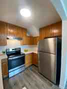 The cozy galley-style kitchen offers generous cabinet space and includes a dishwasher to accommodate all your culinary needs.