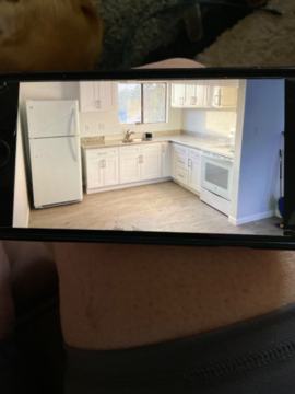 One bedroom, one bath, full kitchen, living and bedroom. Walk in closet. Totally refurbished with new paint, cabinets, floors, appliances, granite counters in kitchen and bath. Text for photos.