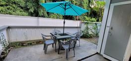1 Bdrm / 1 Ba / 1 Assigned Pkg at Crosspointe. Gated community with 24-hr security. Beautiful and well maintained. Rarely available, corner, ground floor unit with spacious 225 Sq Ft fenced in yard, surrounded by trees and forest like setting with no neighbors in front. Yard includes patio set. Gas grill allowed. Gated community with secured entry, recreation area, swimming pool, clubhouse, and gym. Unit clean and in great condition. Available 25 Oct 2025. Call or email now for showing!