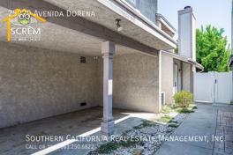 This beautiful three-bedroom townhouse is located in a secure gated community in Newhall. Upon entering, you'll find a spacious living room with tile flooring, a ceiling fan, and a cozy fireplace with a mantle. Off the living room is a dining area that opens to a lovely and well-equipped kitchen. The kitchen features elegant white cabinets with silver hardware, tile flooring, and a breakfast bar. Kitchen appliances include a gas stove, a single oven, a microwave, a dishwasher, and a refrigerator. From the dining area, you can access a private patio featuring fruit trees and a covered patio, perfect for outdoor relaxation. Downstairs is a half bathroom. The primary bedroom boasts laminate flooring, a vaulted ceiling, two closets, a ceiling fan, and the attached bathroom with a walk-in shower. Additionally, there are two guest bedrooms with comfortable carpet flooring and a full guest bathroom. This property has a one-car garage and a covered carport. It's conveniently located near shopping centers, restaurants, and the 5 freeway. *Owner may consider a small pet.