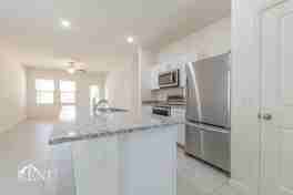 This home includes tile flooring, granite countertops, and stainless steel appliances. As you navigate throughout the rest of the home, you’ll findan open floor plan extending from the dining to the living room, an island in the kitchen, and a walk-in closet in the primary suite.