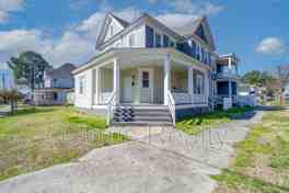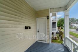 Old world charm with new world amenities. Remodeled first floor unit with newer vinyl plank flooring in living room, kitchen, and bath. Wall to wall carpet in bedrooms. Freshly painted interior. Central heat and air (mini split system). Modern kitchen and bath. Utility closet with hook ups provided for stacked washer/dryer. Washer/dryer not provided. Primary bedroom has additional room that would be terrific for in home office or sitting room. High ceilings. Two ceiling fans. Covered front porch. Lot and street parking.