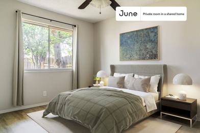 This Full room in Windsor Hills is available on a 12 month lease or a flexible short term (31 to 364 days) lease. You pick your custom start and end date. Monthly rent rate is determined by furnishing preference, move-in date and move-out date. Speak to a June representative for recommendations on the best stay duration for the lowest rate.