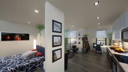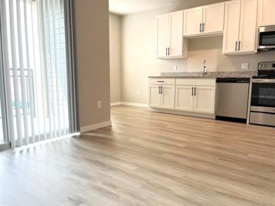 The Summit Residences! This modern second-floor studio offers high-end finishes, including stainless steel appliances, quartz countertops, waterproof engineered flooring, and an in-unit washer/dryer. Enjoy a walled-off carpeted sleeping area with a ceiling fan, air conditioning, and a private balcony.