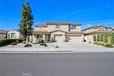 Beautiful and spacious 5-bedroom, 4.5-bathroom home built by William Lyon Homes, offering an exceptional open-concept floor plan and numerous high-end upgrades throughout. The bright and welcoming living room flows seamlessly into the elegant kitchen, featuring granite countertops, a large center island, granite backsplash, abundant cabinetry, and recessed lighting. Shutters in every room add comfort, style, and privacy. A convenient downstairs junior suite provides an ideal space for guests, in-laws, or multi-generational living. Upstairs, the expansive master suite with 2 walking-in closets, additional bedrooms, and a versatile loft offer plenty of room for work, play, or relaxation. The house also includes a 3-car garage and a good-sized backyard with a California room and mature fruit trees, creating a comfortable outdoor setting for daily enjoyment. Walking distance to the school and park/recreation areas. Ideally located just minutes from Costco, shopping center, restaurants, and Ontario International Airport. Easy access to I-60, I-15 & I-210 Freeway. Don't miss this turnkey home! A Must See!