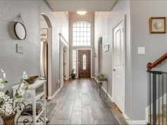Fantastic home with lots of charm! Beautiful natural light greets you in the spacious foyer as you peer into the openness of the kitchen and living area perfect for keeping the family together. Kitchen features granite counters, tiled backsplash and no shortage of cabinet and counter space. Enjoy relaxing or entertaining in the large living area with beautiful laminates and cozy fireplace. With the split bedroom design master suite features walk in closet, granite counter, tiled shower with separate garden tub to soak! Patio has been extended for those family cookouts with plenty of room to play in the backyard! Community pool, playground and walking path just a block away, Come make this your home today! Great location and great school rating too.