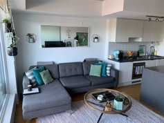 Engineered Hardwood Oak Floors, Caesarstone Counters, Gas Cooktop, Integrated Dishwasher & Fridge, Full Size Washer/Dryer. Modern Kitchen With Island.