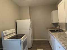 Great location on a side street just off of Chardon Square! This 1st floor apt shares a covered porch with the 2nd floor apt entry. You are welcomed into your apt by a cute decorative fireplace in the living room. Off the back you have a large bedroom with 2 closets and spacious laundry room with electric hook ups. Off the side of the living room you will find the hallway to the full bath with a combo tub/shower, the small eat-in kitchen that has a stove, fridge, dishwasher and plenty of cabinets. The 2nd bedroom is tiny and has built in book shelves and a small cabinet...most ideal for an office (only a twin bed would fit). No pets, no vouchers and 2 vehicles max (tandem parking on right side of triplex). No basement storage allowed.