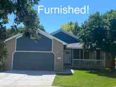 Beautiful, bright and cheery open concept furnished ranch style home in a prime location! The contemporary lighting, pictures & furniture give this home a WOW factor! Cuddle up with a good book next to the cozy stacked stone fireplace. Cook in the fully equipped kitchen, with new quartz countertops, backsplash, new cabinets, oversized island & stainless steel appliances.