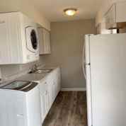 2 Bedrooms, 1 bath, all completely remodeled inside with all new appliances, fixtures, lighting, floors, paint, water heater and HVAC system. Appliances include fridge, oven/stove, microwave, garbage disposal, compact washer and dryer. Off street parking for 2 available. Yard care and trash are included.