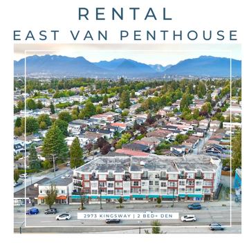 FOR RENT: Penthouse at 2973 Kingsway – Modern 2 Bed + Den w/ Views!