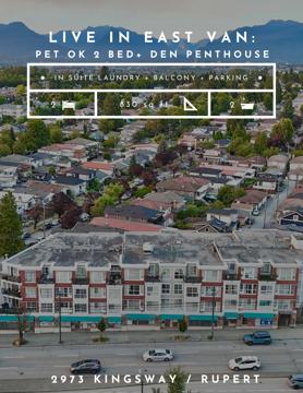 FOR RENT: Pet Friendly Penthouse at 2973 Kingsway – Modern 2 Bed + Den w/ Views!