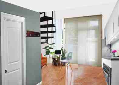 Modeled after a cruise ship cabin, the furnished units come equipped with a queen-sized bed and more. The sink doubles for both the kitchen and the bathroom, the microwave doubles as an oven. The units start at $850/mo.
