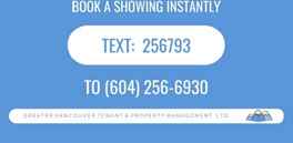 Please text us as per the information in the photos or contact us using the buttons available. If the home is ready for showings we will reach out to schedule a private showing with you. The home is available now! We are offering a studio/1 bathroom condo for rent in Vancouver. The home is located on the 3rd floor with a balcony. Other great features include kitchen appliances (fridge, gas stove, dishwasher, and microwave), air conditioning, laminate flooring, in suite washer & dryer, and approximately 400 square feet of living space. There is 1 parking spot available for $100/mo and storage locker included. Provided with your rent is access to the community amenities: community gardens, lounge areas, lush lawns, BBQ with outdoor seating area and a children’s play area. The home is located on the border of Vancouver and Richmond. Grocery stores, shops and restaurants within minutes all at the south end of Granville St, Marine Dr and Richmond. There is a Best Western and White Spot Restaurant right next door. YVR International Airport is a 12 minute drive away. - Neighbourhood: Marpole, Vancouver - Type of Unit: Condo - Approximate Square Footage: 400 - View Direction: North - Number of Bedrooms: Studio - Number of Bathrooms: 1 - Heating / Cooling: Heat Pump / Heat Pump Cooling - Number of Parking Spots and Type: 1 spot available $100/mo - Storage Locker: Yes - Pet Policy: 1 pet permitted (35lb weight limit full grown) - Smoking: No smoking, growing, or processing any cigarettes, marijuana, or other combustibles on the property - Services Included with Rent: Building services as provided by Strata, Hot Water, Water, Gas, Sewer Services and Garbage Removal - Tenant Responsible for: Internet, Cable, Hydro (electricity) and Heat Deposit(s): 1 half of one months rent as per legislation