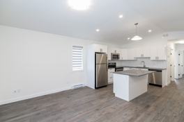Spacious open concept living area with high vaulted ceilings has a spectacular Kitchen, Living room and private Balcony.