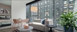 Ready to live in the middle of the action? These luxury apartments are located in Chicago’s Loop, right on the edge of the Lakeshore East community. Opened in 2022, this beautiful high-rise is just steps away from the city’s most popular attractions – walk to Millennium Park, shop Michigan Avenue, stroll along the Chicago River and catch the sunrise over the lake. Standing 47-stories, the skyscraper’s luxury units boast all kinds of modern features. Sophisticated black and white kitchens, sleek bathrooms, huge closets and floor-to-ceiling windows that let the sunshine stream in. Millie’s shared amenities are designed with a Scandinavian aesthetic. You’ll find resort-inspired terraces, cozy lounges and a state-of-the-art fitness center. They didn’t forget your furry friend, either – there’s an entire lounge dedicated to pets at this dog-friendly apartment building (breed restrictions apply, but there is no weight limit)!