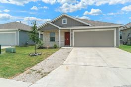 Charming 3-bedroom 2-bathroom house in the Marbach Village subdivision. Home is in close proximity of Lackland AFB, and SeaWorld. Upon entry welcomed by open living room with vinyl flooring. The kitchen has black/stainless steel appliances, gas cooking, and breakfast bar. Living/dining room combo. Primary room is spacious and has a walk in closet. Primary bath has a single vanity and tub/shower combo. Backyard has covered patio with is xeriscaped lawn. Small shed for more storage.