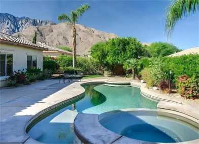 Escape to this stunning turnkey Palm Springs retreat, perfect for your vacation stay (minimum 29 days)! Nestled in a gated community with breathtaking mountain views, this home offers ultimate comfort and relaxation for up to 8 guests. The main house features 3 elegant bedrooms, including a luxurious primary suite with a king bed, en-suite bath with double sinks, a soaking tub, a walk-in shower, and a spacious closet. Two charming queen guest rooms share a beautifully appointed bath. A private 1-bedroom, 1-bath casita with a separate entrance provides added flexibility, complete with a queen bed, sitting area, and full bath. Entertain in the expansive great room with formal dining for 8, or whip up culinary delights in the gourmet kitchen with a breakfast nook. For remote work, a dedicated office is ready for your convenience. Outdoors, soak up the desert sun by the private pool and spa (safety-fenced), relax in the cabana, or grill on the BBQ. Fitness enthusiasts will love the workout equipment, and cozy evenings await by the living room fireplace. With parking for 4 cars (including an RV spot for vehicles up to 32'), this property is as practical as it is luxurious. Seasonally priced at $247/night (Nov-Apr) and $192/night (May-Oct). Additional fees apply: $495 cleaning, $188 admin, security deposit and $50/day for pool heating. Owner covers utilities. Your dream Palm Springs getaway awaits!