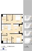 This 2BR unit boasts 1,002 sf of smart home living includes a large living space with excellent natural lighting, a kitchen with quartz countertops, stainless steel appliances, high-end cabinetry and counter-height bar seating and convenient in-unit laundry. The spacious sleeping accommodations include a primary bedroom with an expansive walk-in closet and large private bathroom and an additional bedroom with access to a shared unit bathroom. The unit's smart features include fob and cell phone unit access and WiFi-enabled light switches and thermostats.