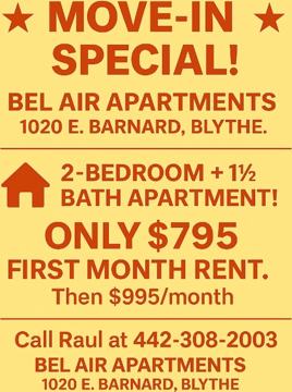 1020 E Barnard St is a 2 bedroom, 1 bathroom apartment for rent. It is located in Blythe. It has apartment amenities including on-site laundry. Dogs are allowed, making it a pet-friendly apartment.