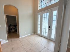 Step outside to the stone pool deck with a private pool and covered porch, perfect for outdoor living. Pool and lawn service are included in the rent.