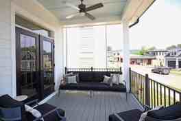 The bright and spacious main level features an open-concept layout filled with natural light. The living room, anchored by a gas fireplace, flows effortlessly into the gourmet kitchen, which is equipped with quartz countertops, stainless steel appliances, and an oversized cast iron butler’s sink. The dining area showcases floor-to-ceiling built-in shelving, while the mudroom includes a built-in cubby system and a generous pantry. This level also offers a half bath and a private study featuring shiplap walls, custom built-ins, and a wet bar with a wine fridge.