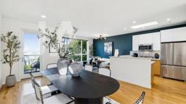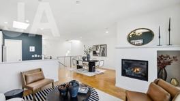 Built in 2010, this home features high ceilings, engineered hardwood floors, and large windows with beautiful Golden Gate views. The open living area includes a gas fireplace with AV hookups and upgraded lighting, flowing seamlessly into a generous dining space ideal for entertaining.