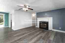 -Beautiful living room with dark wood-like flooring and an electric fireplace