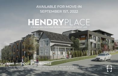 **Hendry Place is expertly developed and professionally managed by The Molnar Group. Dexter PM are the exclusive leasing/marketing agents for Hendry Place and do not act as Landlord. Dexter PM does not charge prospective tenants any handling fees, application fees or processing fees. We are fully licensed with the Real Estate Council of British Columbia and simply act as the marketer for the owner.**