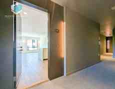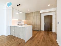 Newly constructed in 2018, this 4th floor, 3-bedroom, 2-bathroom residence offers contemporary design, a flexible floor plan, and thoughtful amenities. The front door opens into a bright and elegant social room with high ceilings and beautiful oak floors. The space is filled with natural light from a set of oversized windows with views to the north and west. The kitchen combines the graceful design of white quartz waterfall countertops, a spacious refrigerator concealed within sleek cabinetry, a breakfast bar, and high-end Bosch appliances.