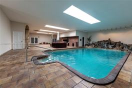 This unique mixed-use commercial/residential property offers an impressive living space highlighted by a skylight ceiling that provides abundant natural light throughout the day. The property features an enclosed deep pool ranging from approximately 6 to 9–10 feet in depth, set within an estimated 3,000 sq ft area and enhanced with a waterfall, lighting, and a jacuzzi.
