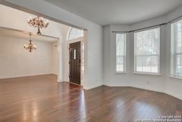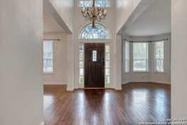 Escape the hustle of the day and come home to comfort. This spacious open floor plan boasts soaring ceilings and a gourmet kitchen with double ovens. An upstairs game room offers the perfect retreat for fun or relaxation, while elegant hardwood and travertine floors add timeless style. Nestled on a lush corner lot with mature trees, the huge covered patio provides seamless indoor/outdoor living. Ideally located near major highways, UTSA, USAA, and the Medical Center, plus just minutes from parks, shopping, and dining. Pets welcome!