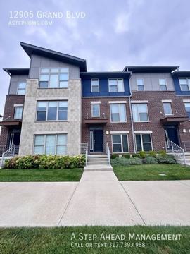 Welcome home to this beautifully maintained 2-bedroom, 3.5-bath tri-level townhome located in the highly desirable Grand & Main neighborhood in Carmel. This spacious home offers a versatile layout with multiple living areas, including a bright main living room and a cozy hearth room with a gas fireplace. The lower-level family room with a full bathroom provides the perfect space for guests, a home office, or a media room. The stunning kitchen features quartz countertops, a large center island, a built-in pantry, and stainless steel appliances, with a dining area and private balcony just off the kitchen—ideal for relaxing or entertaining. Upstairs, you’ll find a loft area for additional living space, along with both bedrooms. The primary suite includes a double vanity sink and a spacious walk-in closet. Washer and dryer hook-ups are conveniently located on the upper level. Additional highlights include a half bath on the main level, window coverings, stylish light fixtures, neutral finishes throughout, and a two-car attached garage. This home offers the perfect blend of comfort, style, and convenience in one of Carmel’s most sought-after communities.