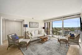 Seconds away from the beach is this rare BEAUTIFUL totally renovated 2 bedroom, 2 bath penthouse condo in Oceancrest located in Jupiter across the street from the ocean. Features include: wood flooring throughout, stainless steel appliances, Quartz countertops in kitchen w/ stone backsplash and bathrooms, breakfast bar with stools, crown molding, lovely contemporary furniture and furnishings, huge balcony to enjoy the daily sunsets, shutters, walk in closets, laundry room, garage parking, 24/7 concierge, resort style pool with spacious deck, spa, fitness center, workshop, party room and car wash. All utilities included except electric. Don't miss out on this beauty! Available 1/1/2026 with a 90 day minimum.
