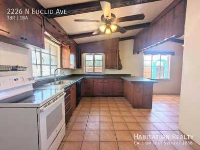 This is an excellent 3 bedroom, one bathroom home, with an office den, is located just north of the University near the corner of Edison and Euclid. The Sausage Deli is literally a few steps away, so you will never go hungry! This home also has has a cool ski-lodge vibe inside, with a natural stone fireplace, along with dark-stained knotty pine paneling and ceiling beams. The extra den makes a great study room, spare bedroom, or office!