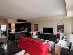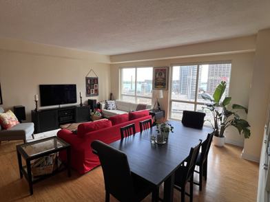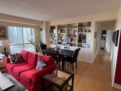 Big and bright south facing unit at the iconic 25 the Esplanade. Coveted ‘03 unit on the 17th floor with high ceilings. Amenities and transit steps away. 1.5 bathrooms. 2 bedrooms, master with walk-in closet. Laundry en suite and utilities included. Huge living room with built in shelving. Renovated modern kitchen with granite counter tops. Has housed couples and small families long-term. 24 Hour Concierge, Gym, Sauna, Whirlpool, Outdoor Terraces, Children’s & BBQ Area, Party, Billiard and Board rooms. Forget your work life as you ride the elevator home.