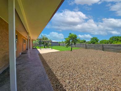 Step into this well-maintained 3-bedroom, 2.5-bathroom home from the early 1970s, offering comfortable living in a peaceful Santa Fe neighborhood. The single-story ranch-style design features a spacious layout with hardwood floors throughout, creating an inviting flow from the living areas to the bedrooms. The dining room opens to a sunny patio through large windows and sliding doors, perfect for casual meals and indoor-outdoor enjoyment. Bedrooms are bright and airy, with ample natural light and built-in storage, including a serene primary suite. The kitchen provides everyday functionality with plenty of counter space and cabinetry. Outside, the highlight is the huge, fully fenced yard. Ready for your personal touches.