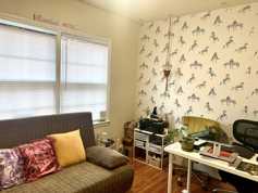 2br/1ba. Unit has one large bedroom and one small bedroom. Ideal for individuals looking to have an office. The small bedroom makes a roommate situation less desirable. There is ample closet space, attached private laundry room, central air and gas heat, and hardwood floors in the bedrooms and living space. The kitchen and bathroom have just been updated. The kitchen has granite counter tops, dishwasher, electric stove, and refrigerator. All utilities are paid by tenant (water & sewer, natural gas, electricity).