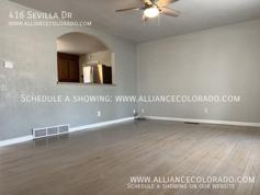 416 Sevilla Dr, Security-Widefield, CO is a 3 bedroom, 2 bathrooms apartment for rent. It is located in the Fountain Valley Ranch neighborhood of Security-Widefield. It has apartment amenities including outdoor space, in-unit laundry, assigned parking, on-site laundry, hardwood floor, and air conditioning. Dogs are allowed, making it a pet-friendly apartment.