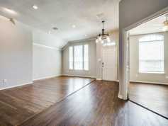 Charming one story on quiet street. Beautiful backyard is a low maintenance tropical paradise with upscale 8' privacy fence and relax waterfall. This home has 3 bedrooms, 2 baths, plus a study room. Updated kitchen with quarts counter top and master bath with frameless shower door, rebuilt shower room, sinks. Wood floor through out. Modern lighting fixtures. Fresh wall painting the whole house. Convenience location: 2 min to SH121, 5 min to DNT. Grandscape, The Star in Friso, and Legacy West all with 10 min. Community pool and park within walking distance.