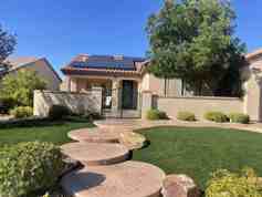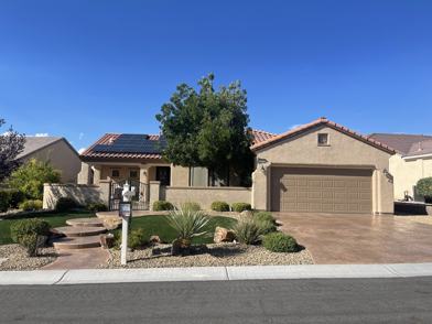 Beautiful Madison model with upgrades galore! Located in the highly sought after Sun City Anthem Community, a +55 Age Restricted Community. SOLAR Panels included to cut those energy bills down! Gated & paved front courtyard, security front door, security screens in windows and sliding doors, crown moldings, granite counters, breakfast bar, island, dining nook, stainless steel appliances, built-in custom cabinetry in both kitchen nook and in the guest bedroom. NO Carpet, tile and wood laminate flooring throughout. Private backyard has extended covered patio and nicely landscaped with seating area. Spacious floorplan offers 2 bedrooms, 2 baths.