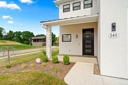 Welcome home! This contemporary home has an open floor plan, soapstone quartz counter tops, large walk in pantry, rooftop patio with gorgeous views, oversized 3 car garage with plug in for an electric car, mud room with storage, electric fireplace, built in's, upper level office space with bar and wine/beverage fridge, corner lot & so much more! Sellers have installed custom shades (with blackout shades for the bedrooms) throughout, a whole home water purification and reverse osmosis system, and a security system. Neighborhood adjoins hiking trails and common space. TV's, washer and dryer all convey with the sale and are less than 5 years old.