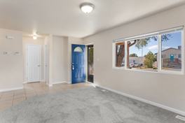 All bedrooms include brand-new carpet and fresh paint throughout. The primary bedroom (10’ x 13’) offers a cozy retreat, while the additional bedrooms feature generous dimensions. The in-unit laundry hook ups add convenience to daily living. The home is equipped with forced-air heating and evaporative cooling for year-round comfort.